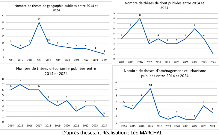 Depuis une dizaine d’années, Fonciers en débat recense les thèses soutenues sur la thématique foncière en France et dans l’espace francophone. Jean Cavailhès avait entrepris ce grand chantier et il est désormais poursuivi, après une interruption, par l’équipe de Fonciers en débat, en particulier grâce au stage effectué en 2025 par Léo Marchal.