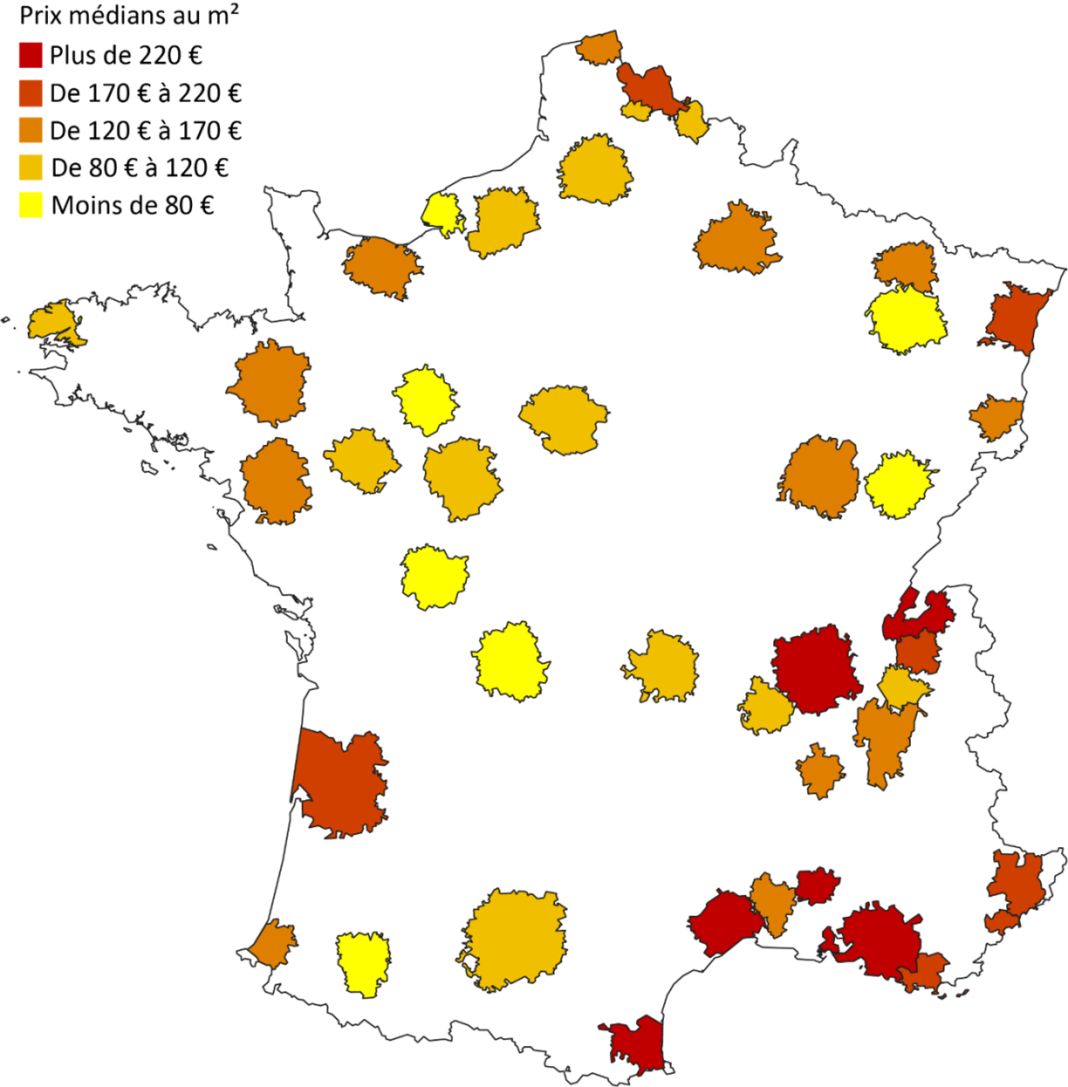 [1] Le prix médian au m² est tel que la moitié des ventes est réalisée à un prix au m² inférieur. L’évolution du prix médian au m² est susceptible d’être impactée par une évolution concomitante de la typologie des biens vendus (localisation, superficie, etc.).