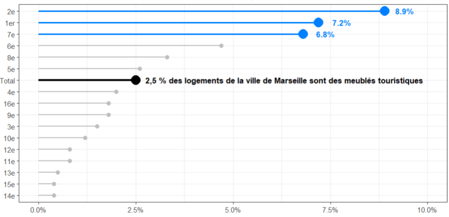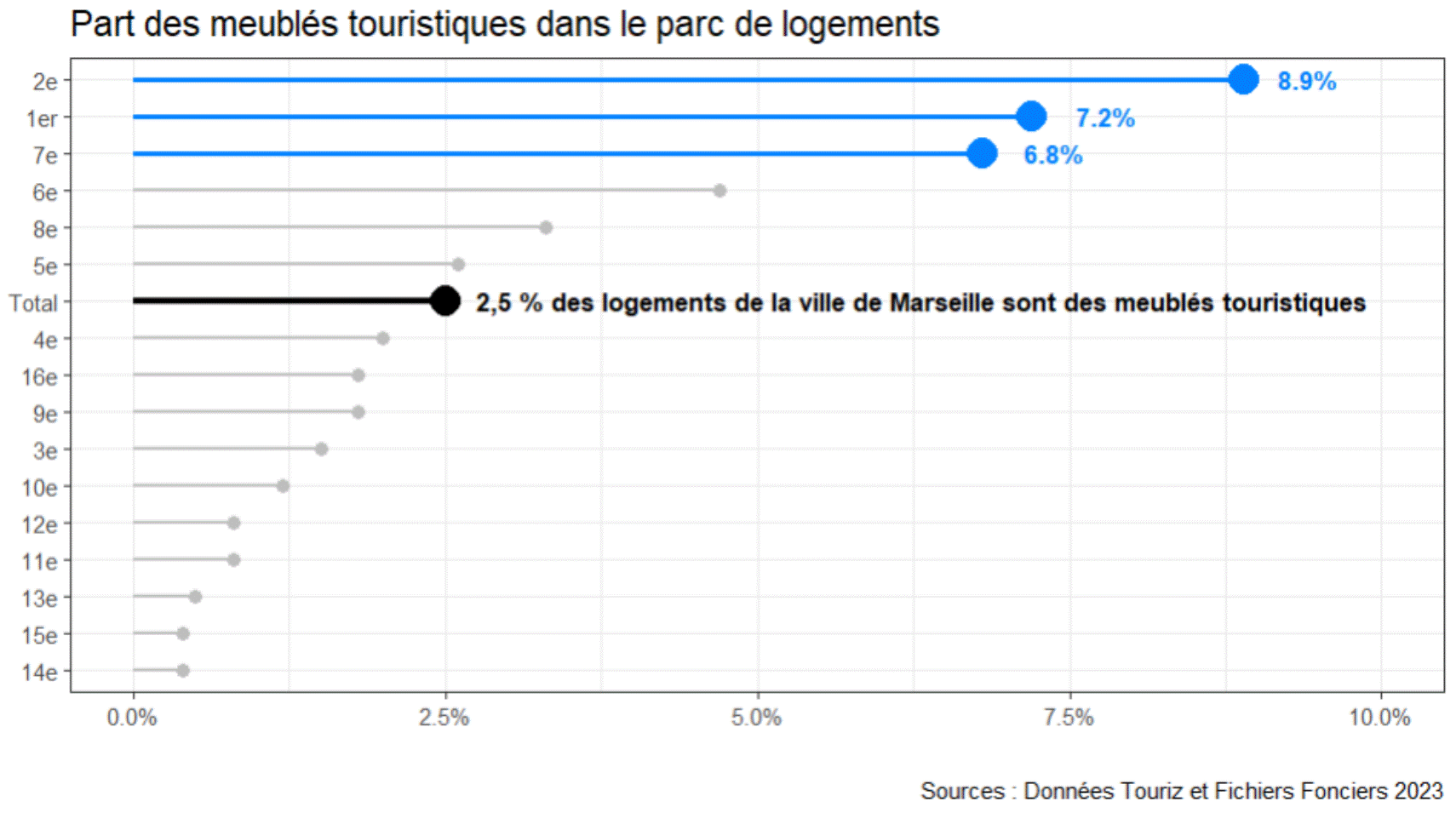 Part des meublés touristiques dans le parc de logement, Marseille, 2023