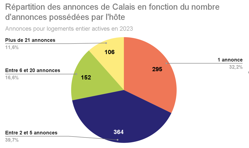 Parmi les annonceurs qui disposent d’au moins 1 logement sur la commune de Calais, seuls 7 possèdent ou gèrent plus de 20 logements, dont 106 se trouvent sur la commune de Calais. Par sondage et travail de terrain, il est apparu qu’il s’agissait en fait de gestionnaires, plus que de multi-propriétaires à la tête d’un parc conséquent.